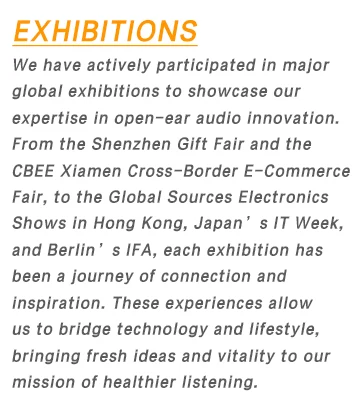 Prodotti principali: Cuffie a conduzione aerea, cuffie a conduzione ossea, occhiali Wireless, cuffie per apparecchi acustici